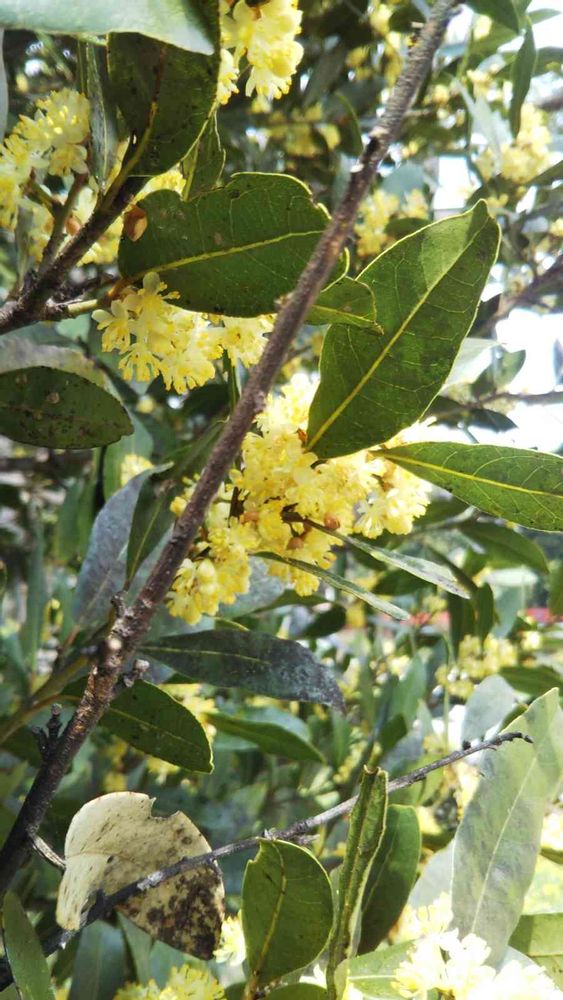 月桂樹の花が咲いていました。スパイスとしてローレルとして利用されたり、月桂冠にも利用される葉です。
