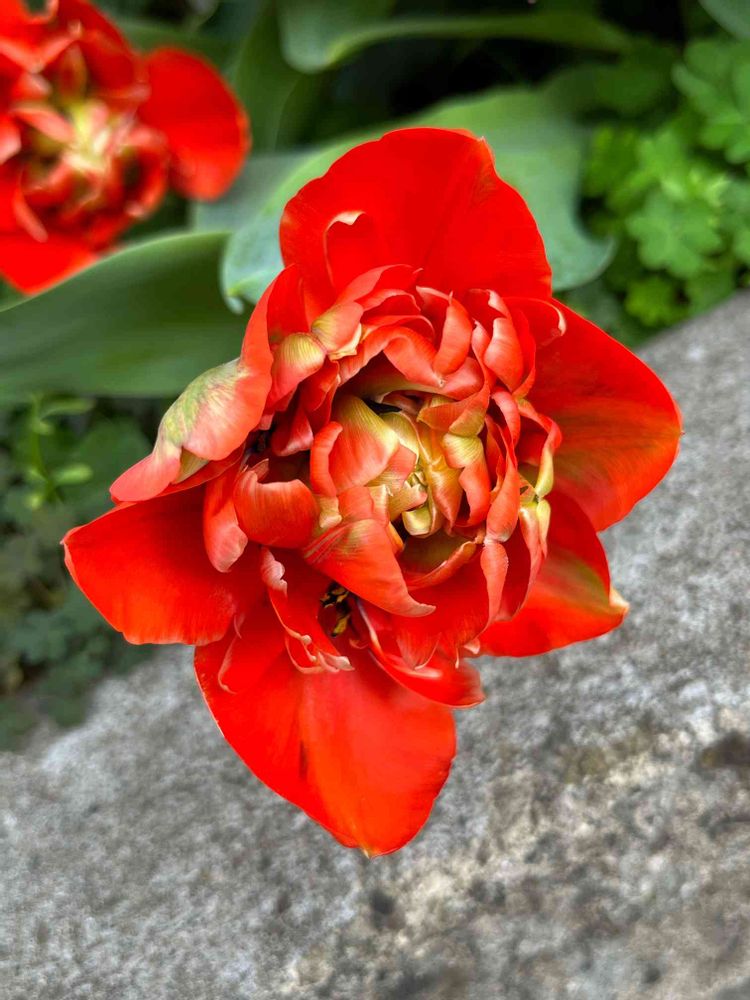 このミックス八重咲き球根🌷は赤と白しか咲かないのかしら😂