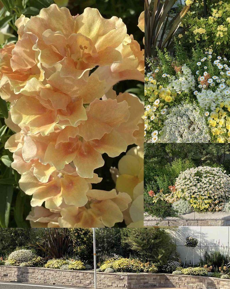 全体は⬇️のように黄色い寄せ植えになっていて長いので パノラマで撮ってみました💗
