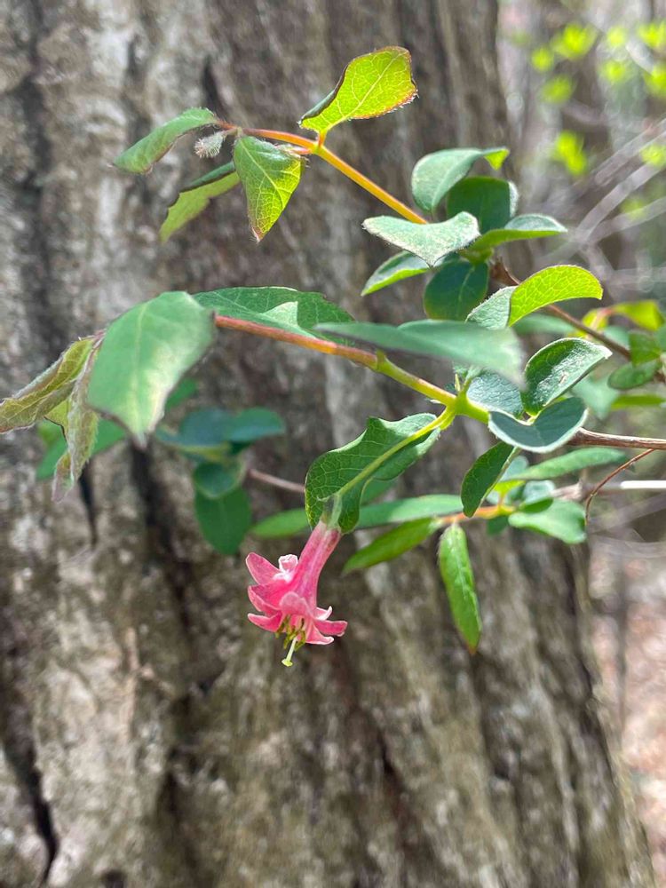 可愛らしいラッパ型の花。初夏に赤く熟すグミのような実は甘みがあって生食できるらしい。食べたい😋
