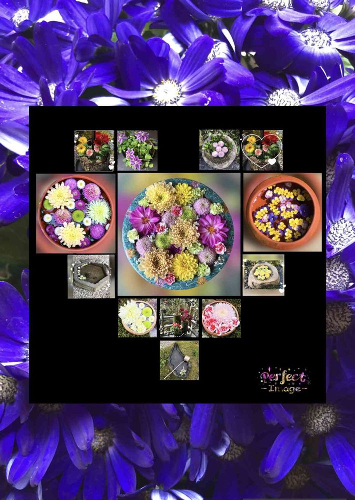 このコラージュはパーフェクトイメージで真ん中のハート型を作成して、ラインカメラで上からお花を切り取ってお花の種類を増やし、最後にピックコラージュでバックを入れました🤗