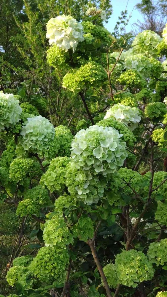 今は咲き始めで ライムグリーンですが 咲き進むにつれて眩しい程の純白へと変わり とても華やかな存在感溢れる花姿です。