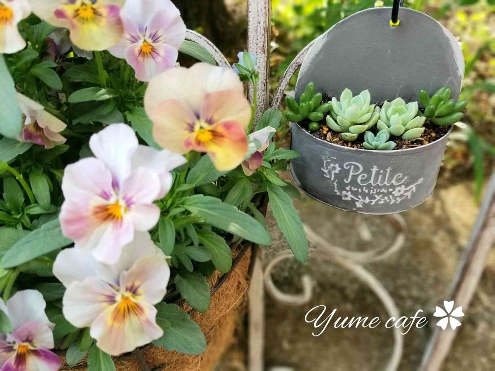 アンティークビオラとちっちゃな多肉植物さんのpic💝