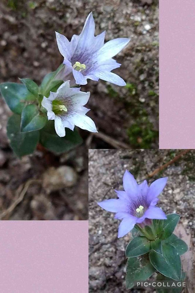 フデリンドウは葉が広く卵形で肉厚、乾いた所に咲き1つの茎に沢山の花を付けるそうです♡