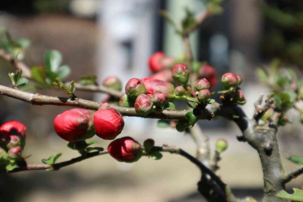 春先に日陰に置いていた木瓜を日当たりの良い所に移動したらやっと花芽が大きくなりました。