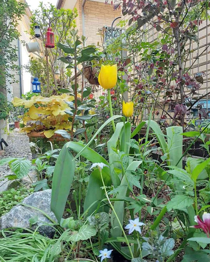 赤い色のチューリップが終わり黄色いチューリップが咲かないぞと思ったら遅れて咲きました😊