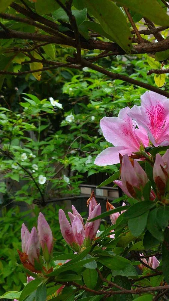 シロヤマブキを見送るツツジのお花と蕾達が可愛い〜💖💖💖