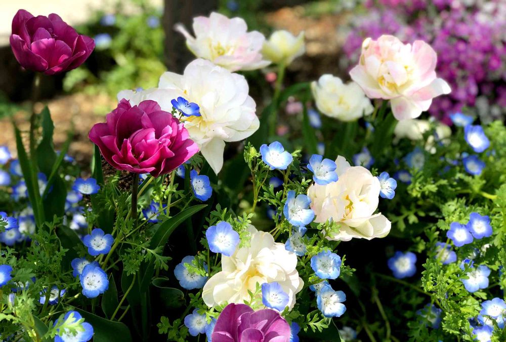 ネモフィラの色💙とチューリップ🌷がすごくマッチしてますよ〜👌