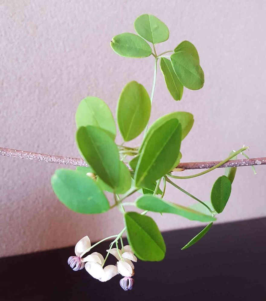 野の道の木々や川岸の木々に絡んでるあけびが今満開です