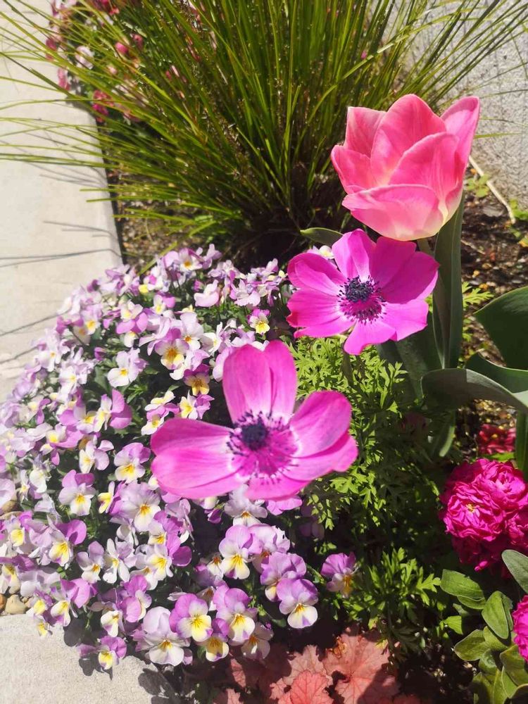 ビオラもりもり、球根からのアネモネとチューリップも咲いてます❤️