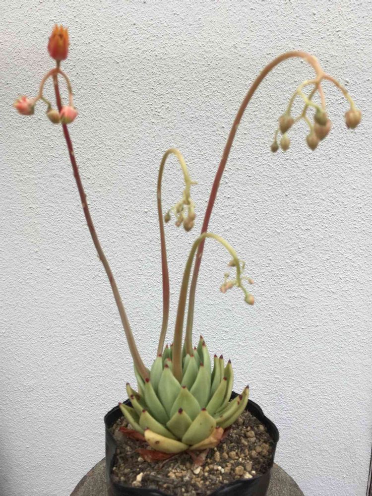 すごいですね❣️この多肉さんからこんなに長ーい茎が出るのですね😀⁉️花数もいっぱいあるように見えるのですが、花が咲くのが楽しみですね🌸咲いたらアップしてくださいね!楽しみにしています☺️💖