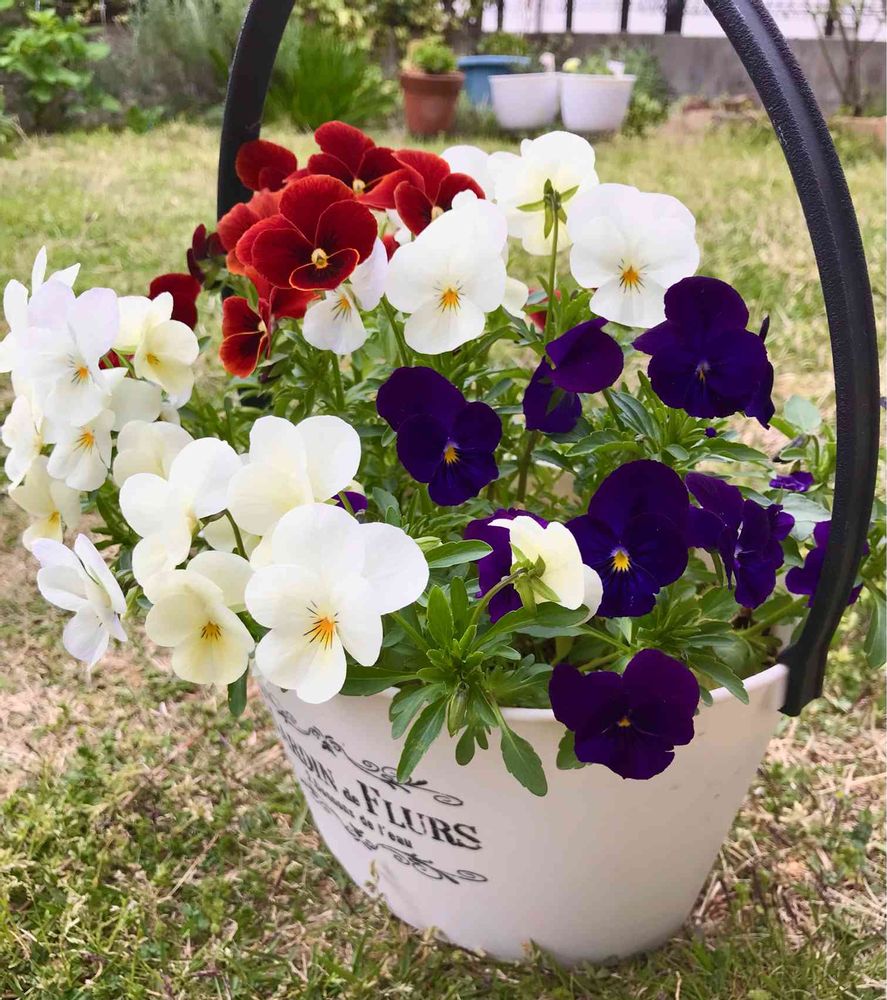 白色と赤色のビオラはすぐに沢山の花を咲かしてくれてましたが、昨日ようやく紫色のビオラもいっぱい咲いてくれました😊