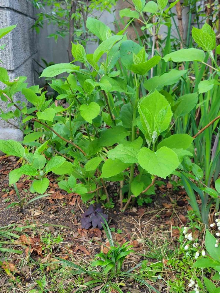 アナベルや他のあじさいたちも、新しい葉が開いてきました🎵