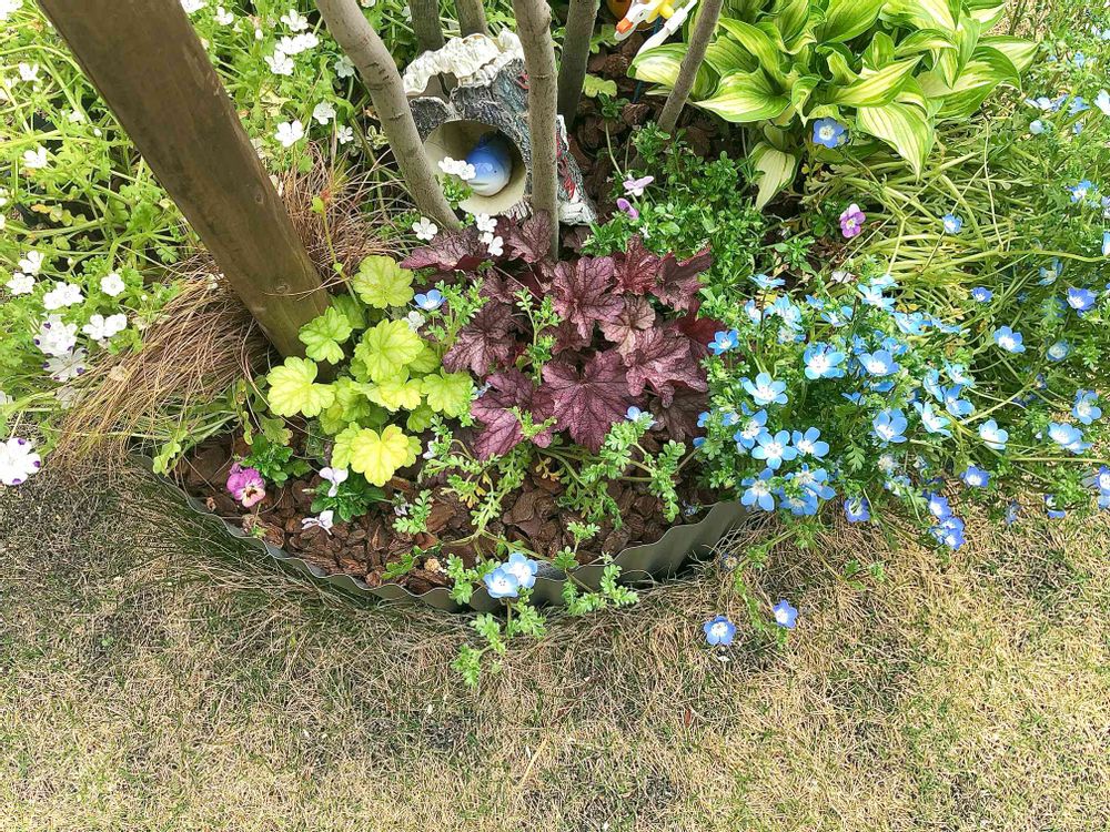 シンボルツリーの株下種まきネモフィラワッサーでもともといたギボウシや、ヒューケラビオラなど隠れてます😅