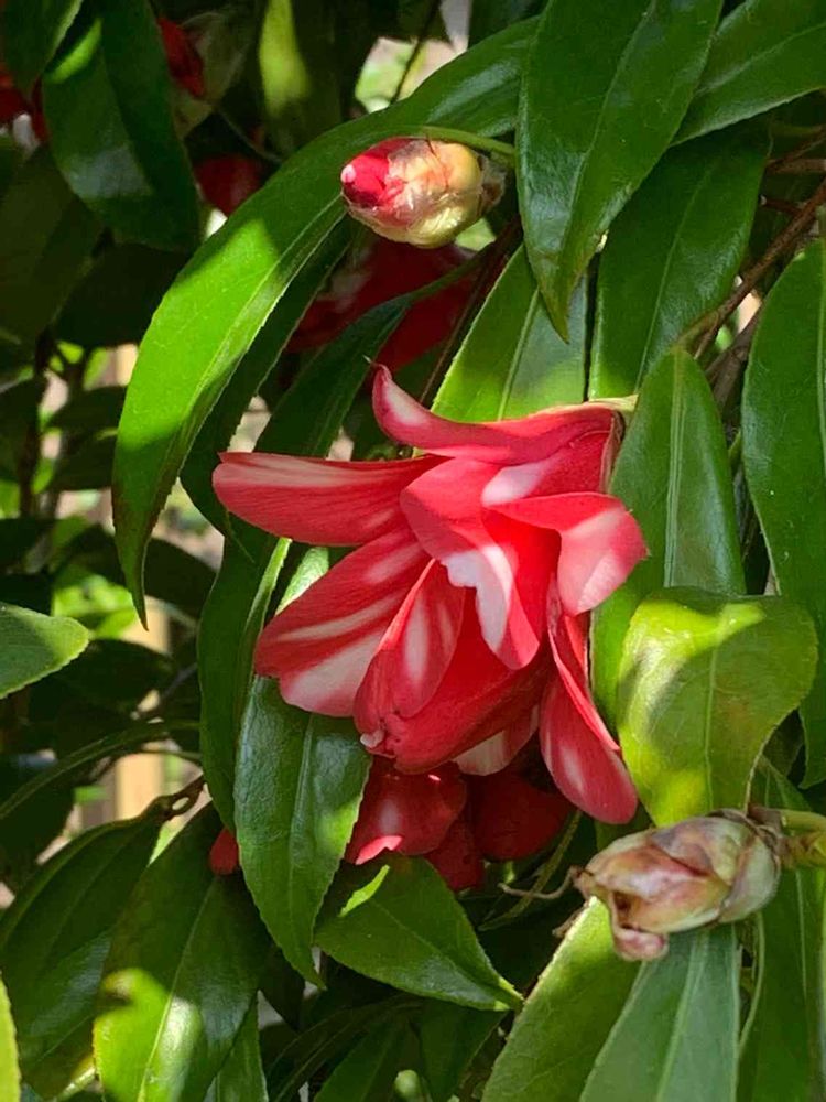我が家の孔雀椿も綺麗に咲いていますが、通りがかりの方に「この椿、みんな垂れていて元気がないですね。大丈夫ですか?」と言われてしまいました。ちょっとショックでした😅