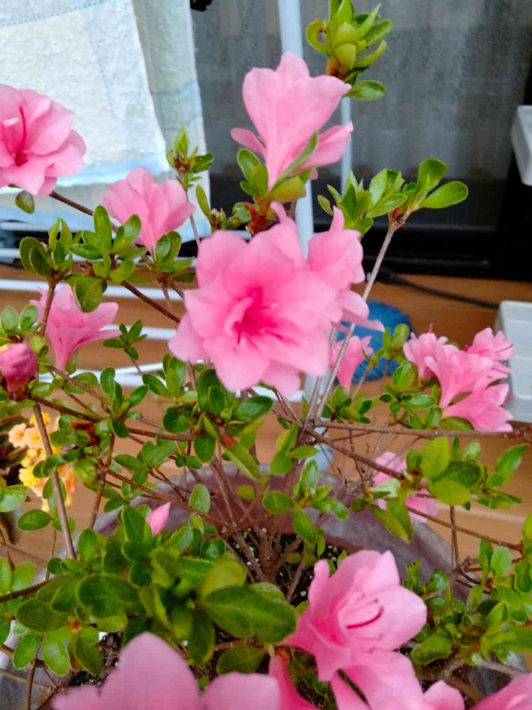 今まで小さい葉っぱはサツキって勝手に思い込んでて、我が家のは全てサツキだと思ってましたが😅、一部の鉢植が早く咲くので、それがどうやらツツジみたい🧐