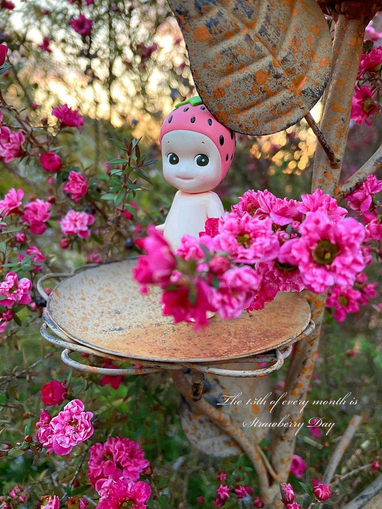 その中で 花見をしているかのようなソニエンくん イチゴの帽子をかぶって、とても可愛いです💓