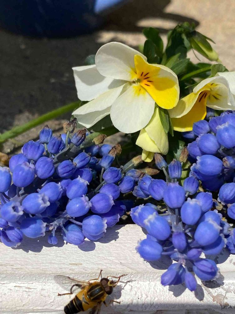キッチンに飾ろうと手折ったムスカリとビオラ💙💛