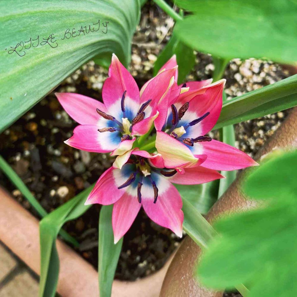 原種系の🌷リトルビューティーさんや〜✨ 濃いピンクに中心部が青色で綺麗💓