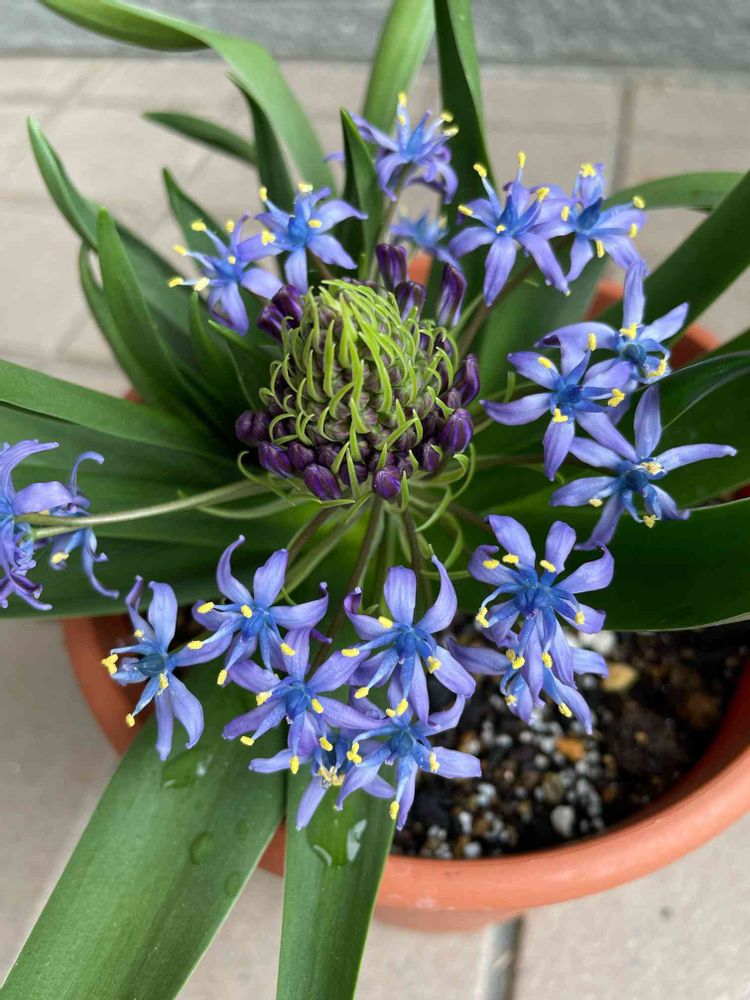昨年お花屋さんで 鉢植えされ芽が5センチ位でてたシラーさん