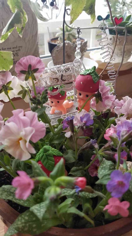 パンジーのお花の中にも🍓キュピちゃんが💗