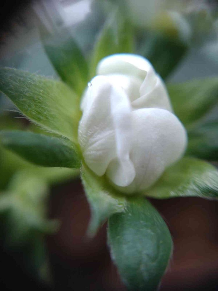 初めて挑戦するいちごです。真っ白い蕾が膨らんでいました。