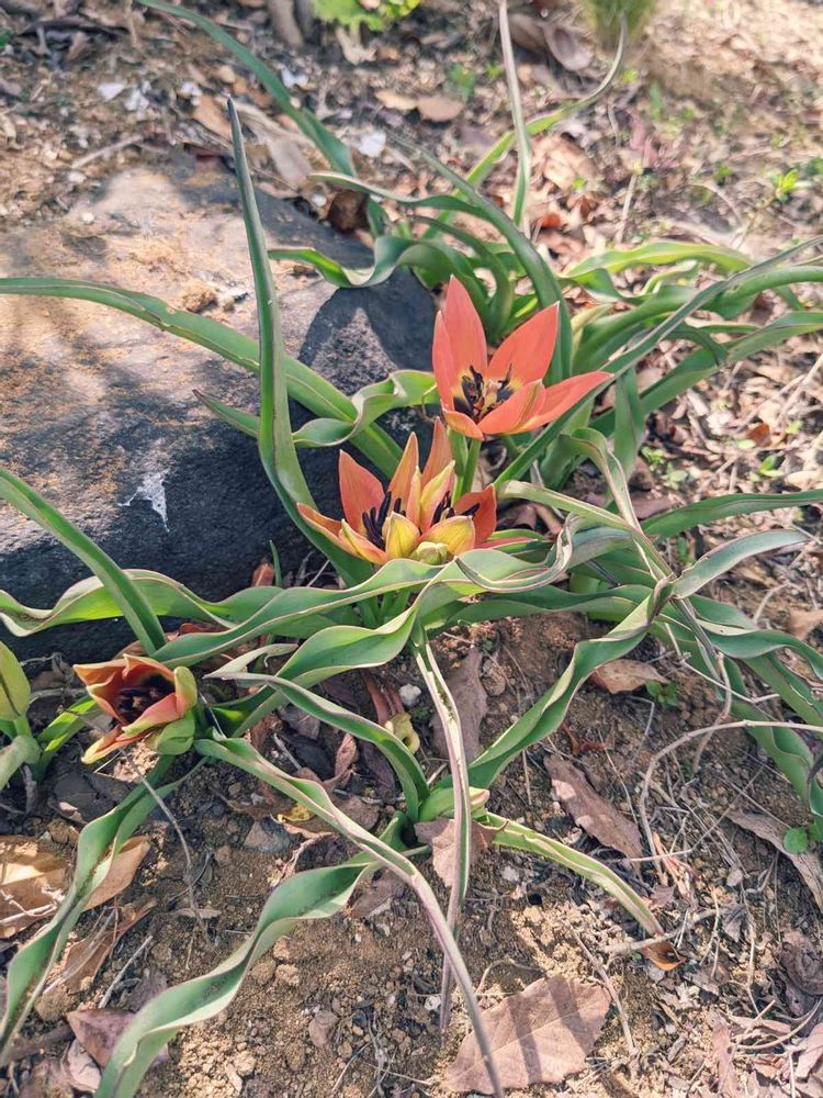 せっかく咲き出した原種チューリップよお顔がなかなか見れません🥲