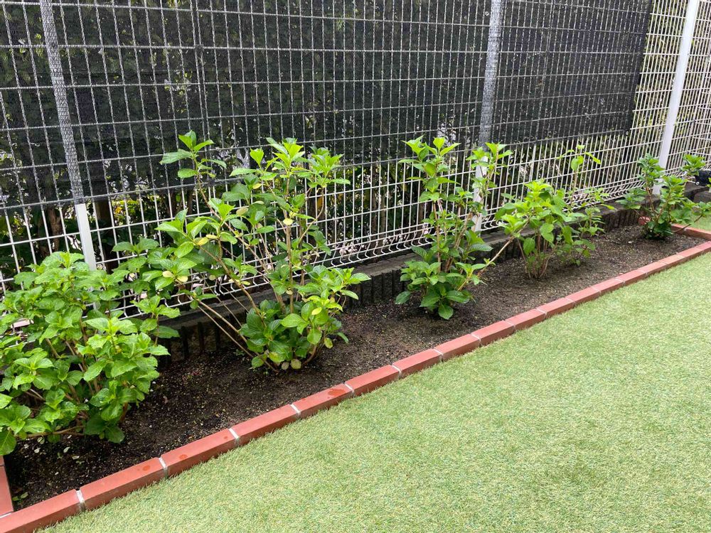 DIYした花壇と鉢で紫陽花を育ててます。最近ペチュニアとカリブラコアの苗を購入しました。園芸初心者🔰です。 小さな庭が賑やかになってきました!