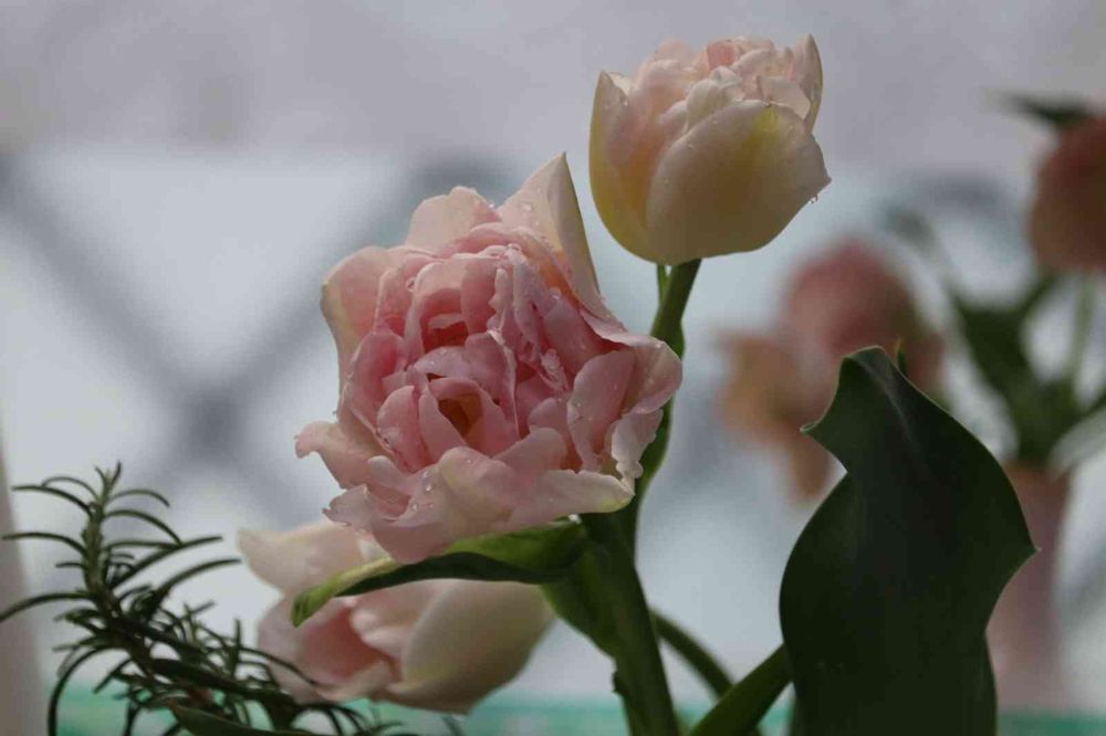 カワイイ色の🌷…💓💓 左の🌿は…先日💠咲いた…ローズマリー…!?🤔