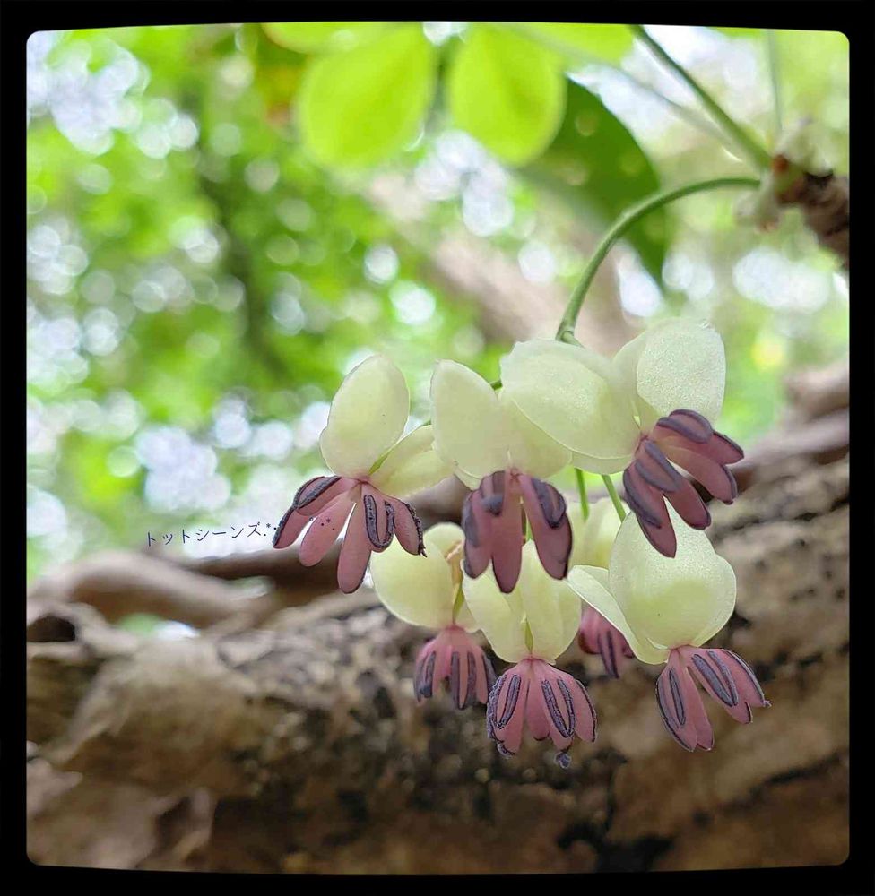 通勤路に咲いてた花、あけびだと判明した(〃艸〃)これが実になったらとって食べたいね🤤