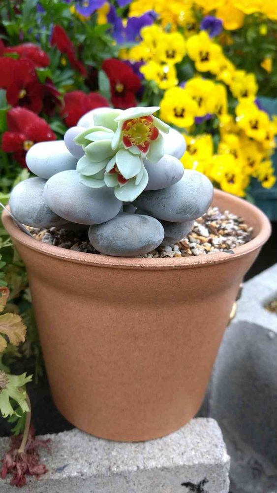 こんな可愛いお花とぷくぷく多肉ちゃんと見てると癒されます😍