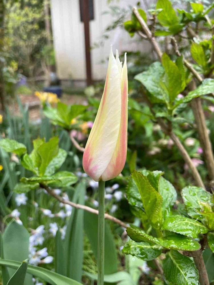 そこらじゅうにチューリップの葉っぱが出てるけど…蕾持ったのは2つだけでした😅
