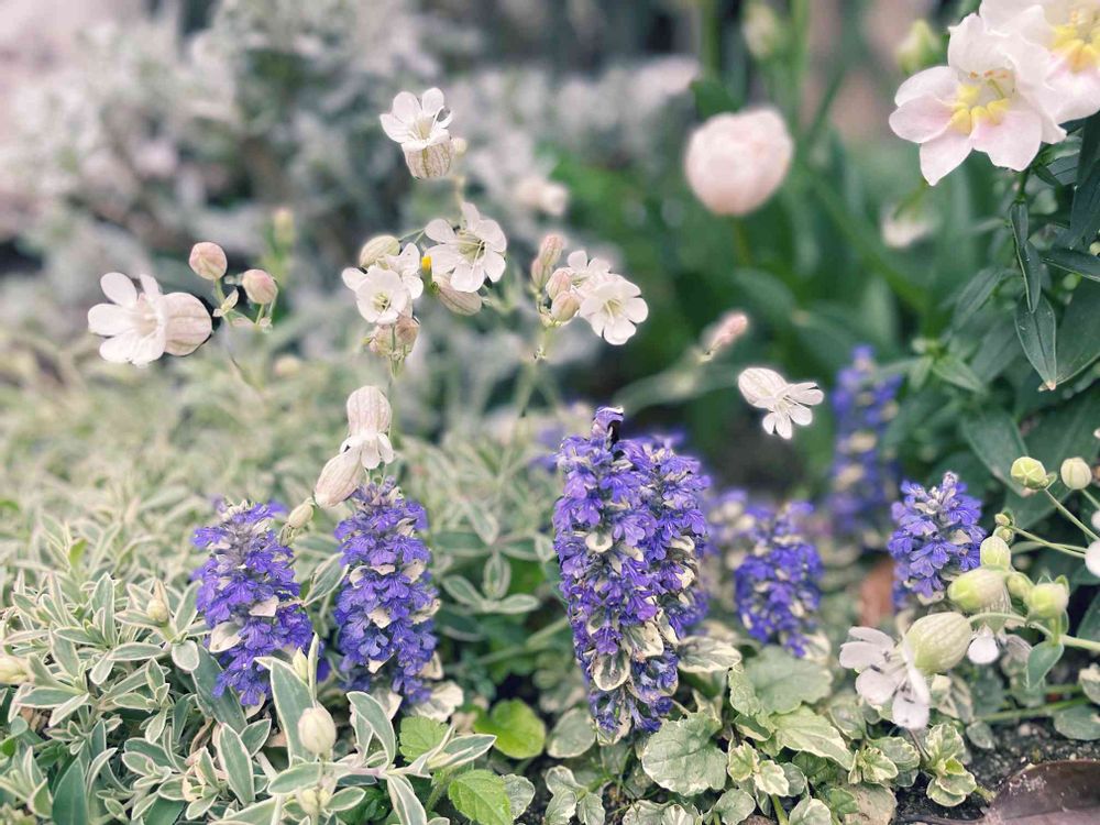 シレネの花がぴょんぴょんとびでて、とっても可愛い♬アジュガも今年は咲いてよかった♡