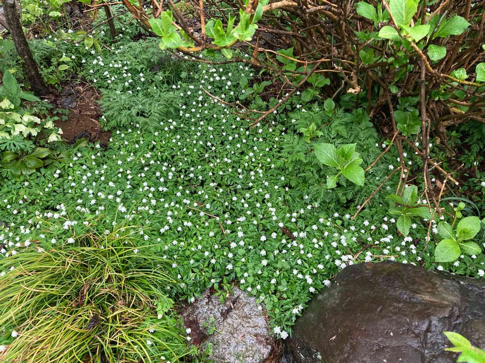 約20㎡の庭が見事にカーペット状に広がりました。こちらはベスタルという八重咲き品種ですが、原種は一重でヨーロッパの北東部からユーラシア大陸にかけて広く分布しているようです。