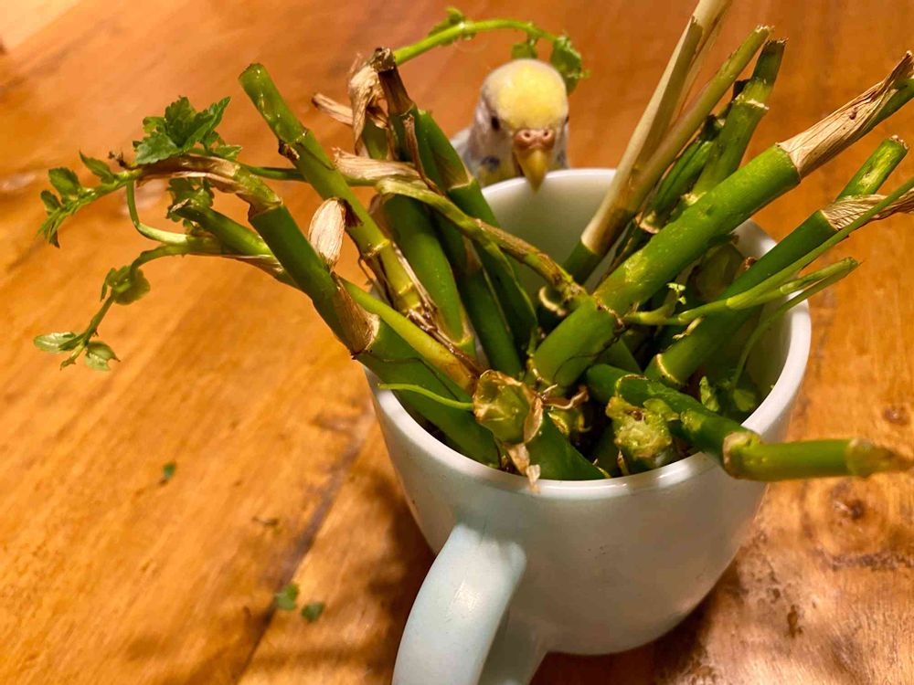 …セリか。食べてみよか🦜