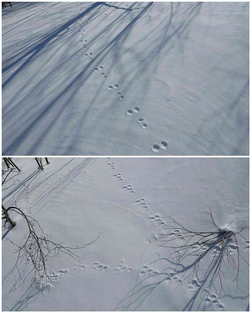 下段の二つの足跡の描く弧が、ノウサギさんの出逢いっぽくてトキメキませんか🎶