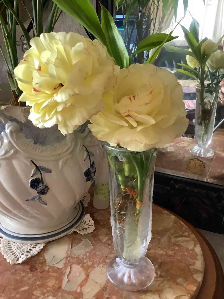 倒れていたラナンキュラスの茎を切って室内に飾りました。