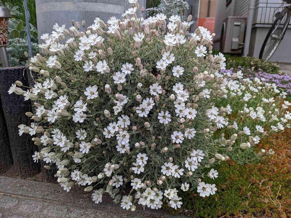 今年もナッキーホワイトシレネの開花シーズン(≧▽≦)。お隣さんにもおすそ分けして、我が家から地続きで一面にナッキーホワイトが満開に咲いてます😁