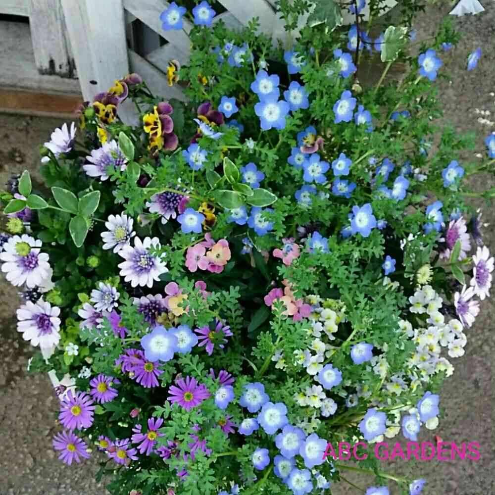 ネモフィラの青が寄せ植えを華やかに🍀