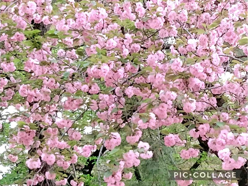 いつも通り抜ける公園の八重桜が満開でした🌸🌸🌸
