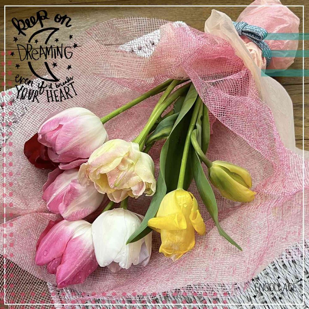 おしゃれなチューリップをもっとおしゃれに花束にアレンジされて素敵です〜💐💗