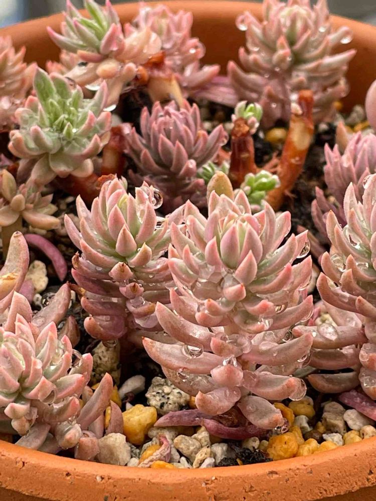 寒さを乗り越え可愛く紅葉していた子達にチラホラとみどり色が出てきています🎵
