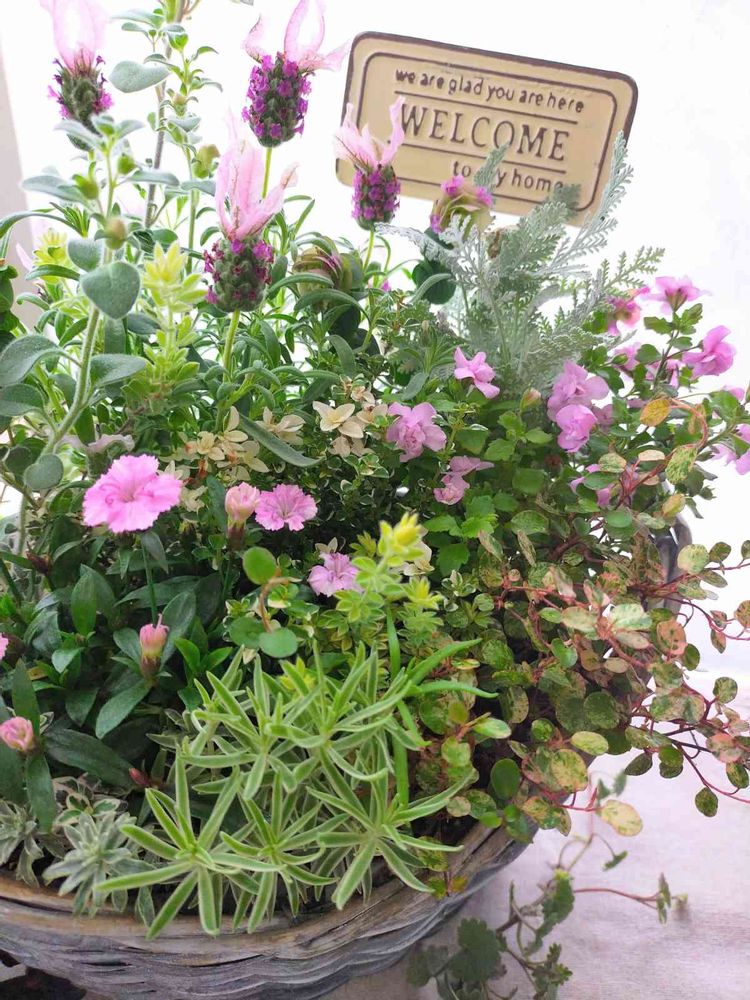ピンクのお花と明るいグリーンのリーフで爽やかな寄せ植えとなりました💖💚✨