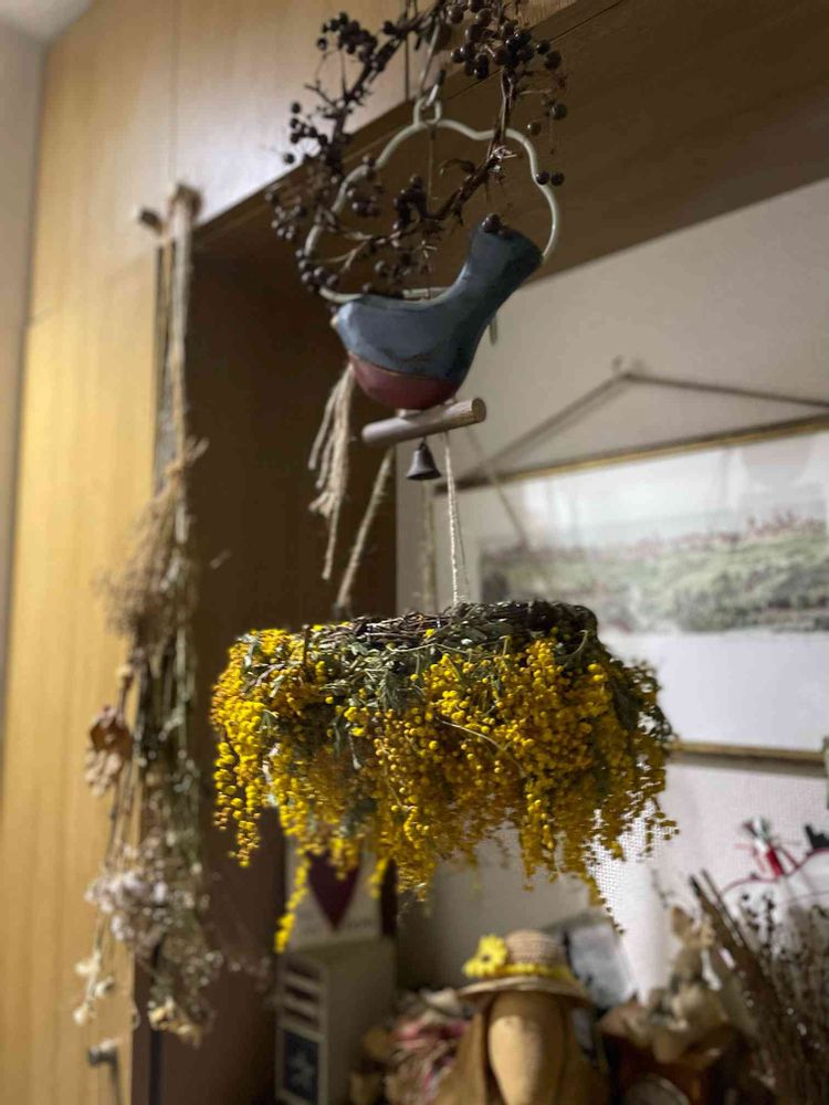 のんのんさんの玄関,ミモザのリース,くもフックの投稿画像
