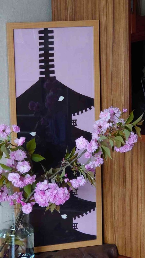 一枝手折って、大好きな手ぬぐいとコラボ✨