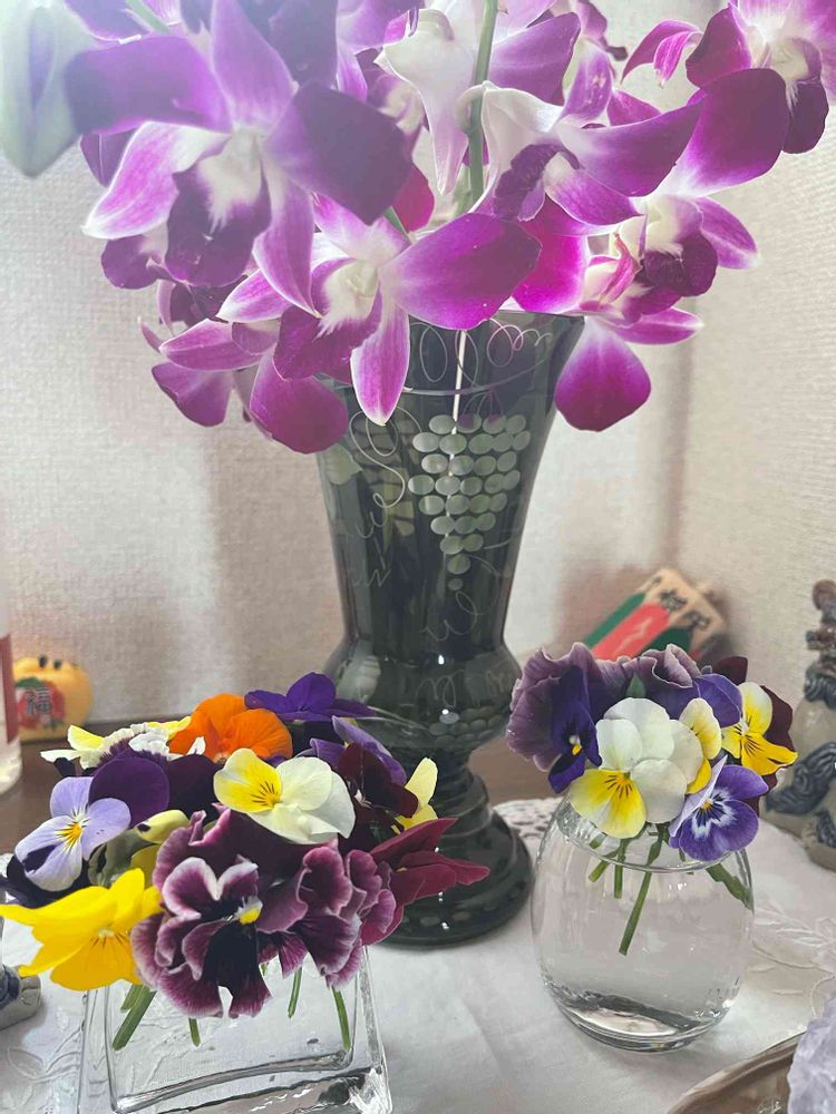 うちのビオラとシンビジウムのコラボです😊👍🙆♂️