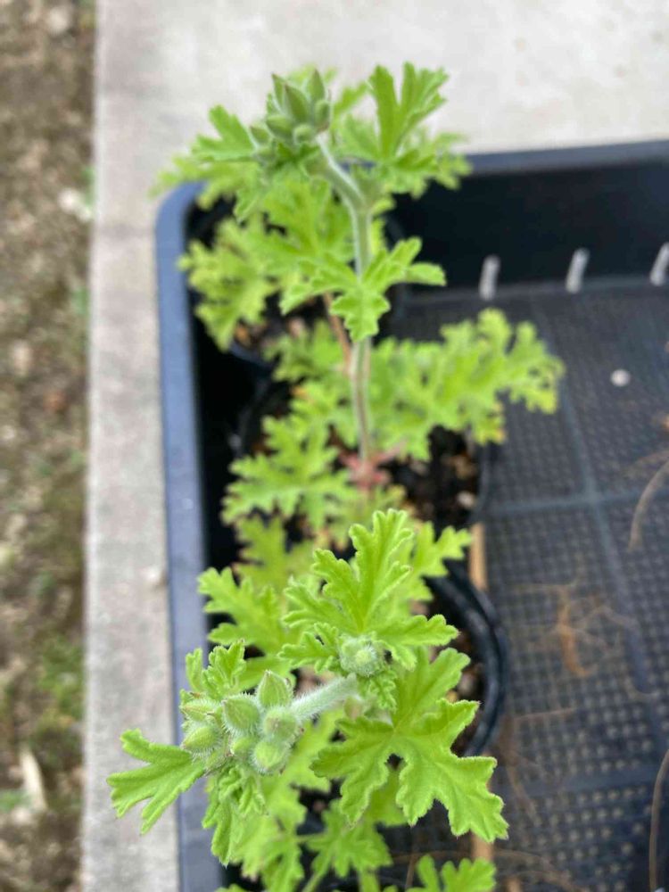 昨年夏に挿し木したゼラニウムの小さな苗に蕾がついていました❗️他の挿し木や親株にも蕾が付いていました🎵