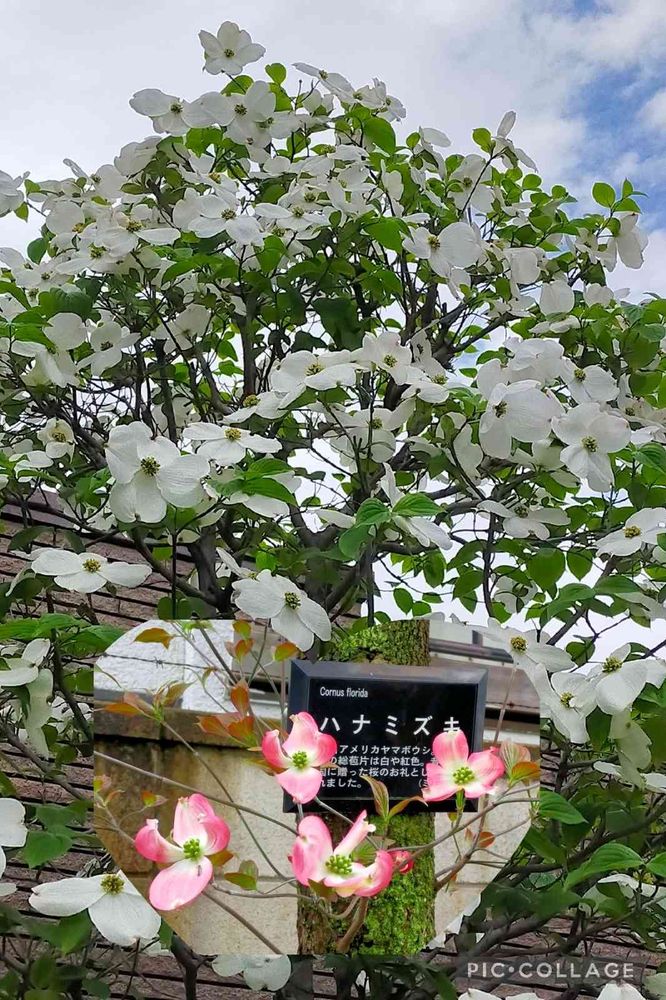 赤いハナミズキの札に、別名「アメリカヤマボウシ」、アメリカに桜を贈ったお礼に贈られた花と記されていて、初めて知りました😅