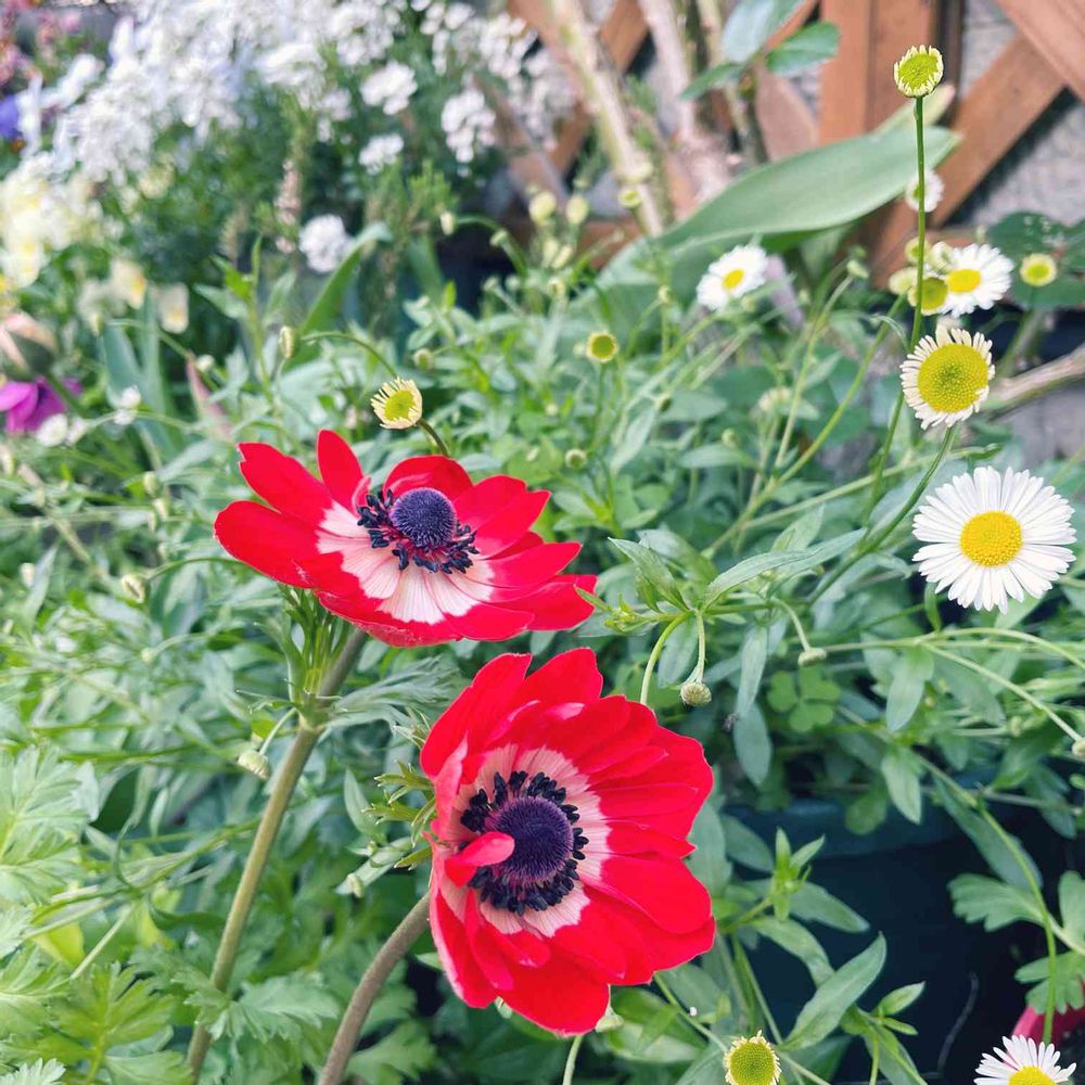 後ろのエリゲロンは、こぼれ種からあちこちに芽が出ていて咲き始めました🌸
