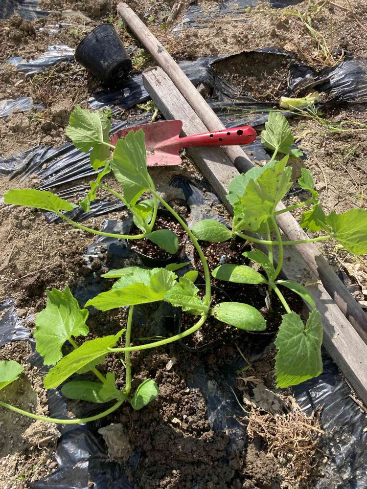 育苗したズッキーニの苗、夏野菜の中で一番で植えつけしました。